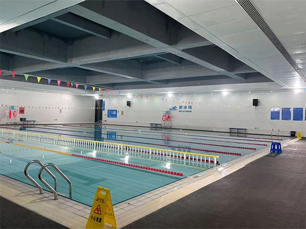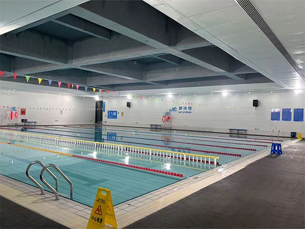 Yüzme havuzunun dış kısmında, cephenin eğimi ve güneş ışığının yönü ile değişen, "suyun akışını" artıran, ölçeğe benzer bir ışık ve gölge etkisi yaratan metal balık pulu panel sistemi bulunmaktadır. Kapalı havuz alanının tüm çatı yapısı, 48 metrelik bir kafes kiriş ile açığa çıkarılarak yapısal mantığın açık ifadesi vurgulanır ve spor alanının mekansal ölçeği ve güç duygusu güçlendirilir. Mekan iki havuza ev sahipliği yapıyor: bir yarışma havuzu ve bir eğitim havuzu. Yarışma havuzu 50 metre uzunluğunda, 25 metre genişliğinde, 8 kulvarlı olup; Eğitim havuzu 50 metre uzunluğunda ve 17 metre genişliğinde olup 6 kulvarlıdır. Her iki havuz da 2 metre derinliğindedir.